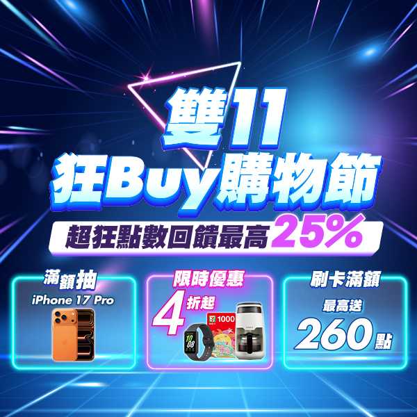 【雙11狂Buy購物節】最高回饋25%!滿額抽iPhone 17 Pro!