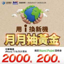 用 i 換新機,月月抽黃金!指定 Hami Point 限時加碼200