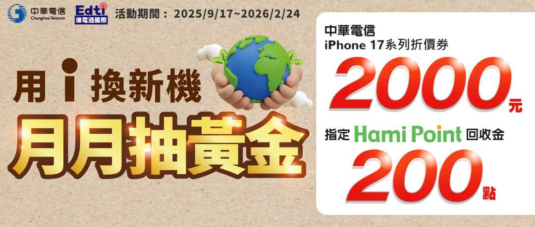用 i 換新機,月月抽黃金,最高回收價系金ㄟ!-指定 Hami Point 限時加碼200