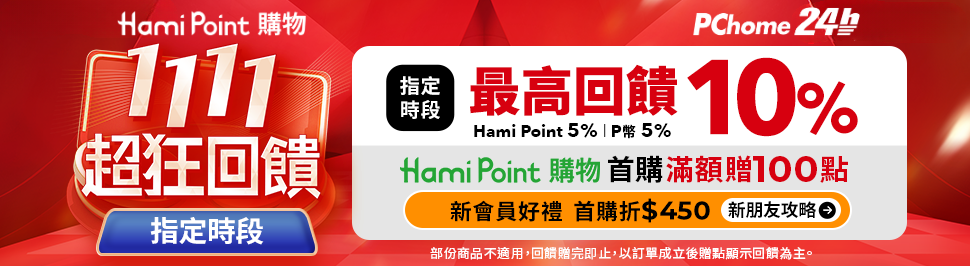 ※Hami Point購物之「原始回饋」與「加碼回饋」係分開獨立計算。各項回饋金額均以每筆訂單實際符合回饋條件之金額為基準,依各自回饋比例計算後,採「無條件捨去」方式取整數點數,並於各項回饋分別計算完成後加總為最終回饋點數。