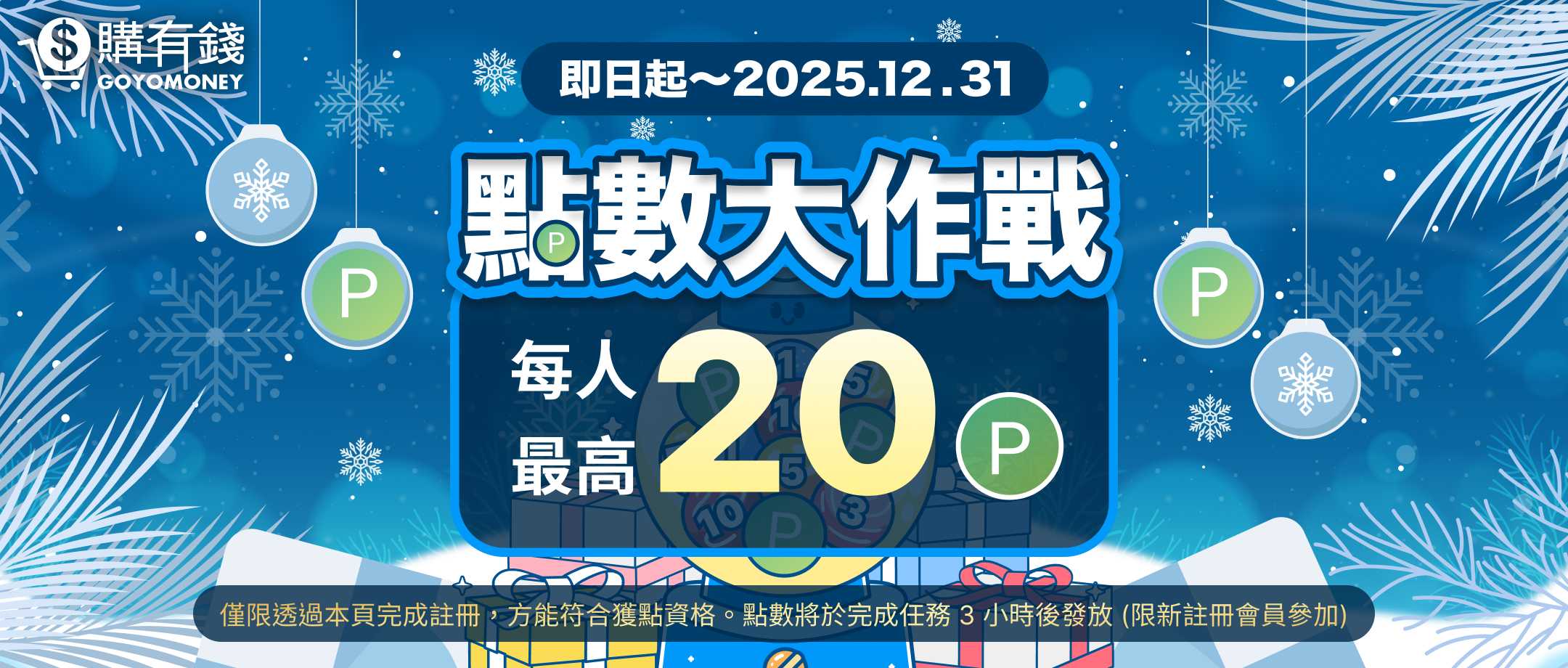 1.僅限透過本活動頁之指定連結完成新註冊之會員,方能符合任務獲點資格。每人每帳號限一次。