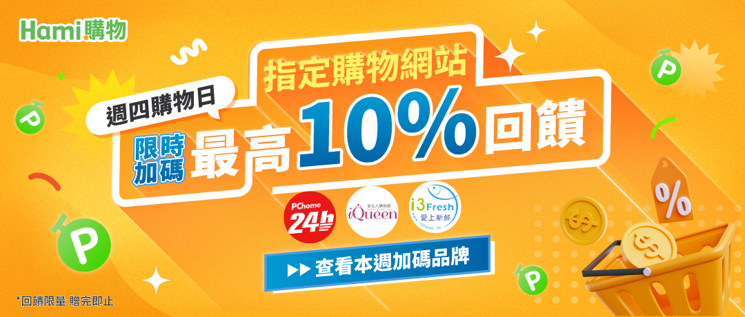 ※加碼回饋以「系統紀錄的結帳時間」為準,額滿即止。加碼總額若當日達上限,將公告於 Hami Point 官網(https://hamipoint.cht.com.tw/),惟公告時間非實際額滿時間,建議儘早下單。